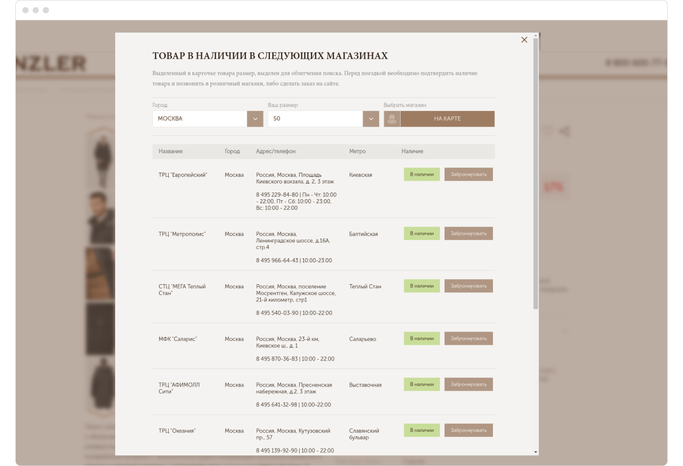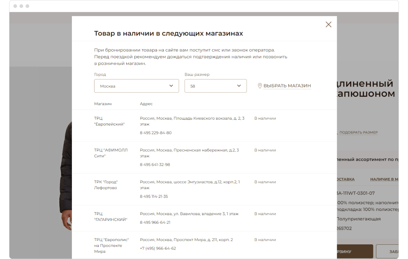 На стороне сайта сделали вывод размерного ряда, в котором объединили международный размер и размер производителя. Сделали вывод мерок — расшифровки по размерам.