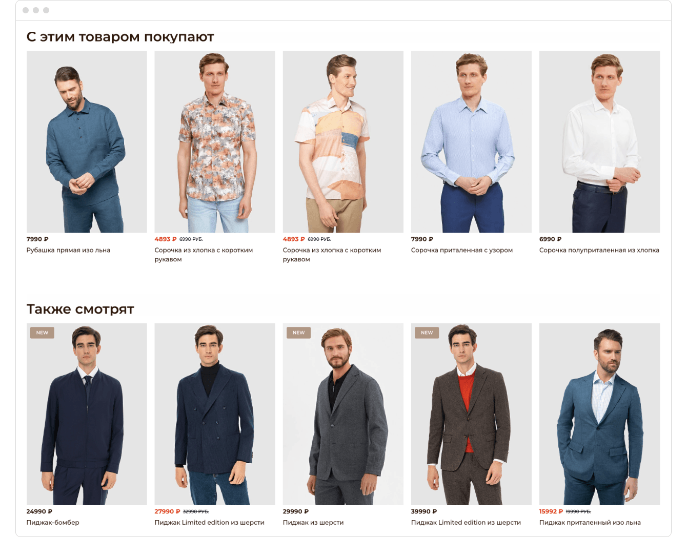 Так выглядят настраиваемые блоки «С этим товаром покупают» и «Также смотрят»:
