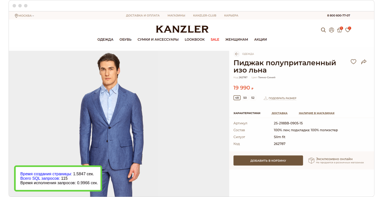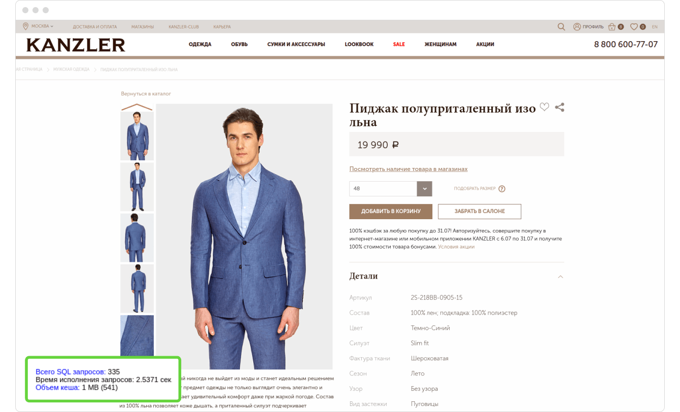 Старый дизайн карточки товара. Количество SQL-запросов: 335. Время исполнения запросов: 2,5371