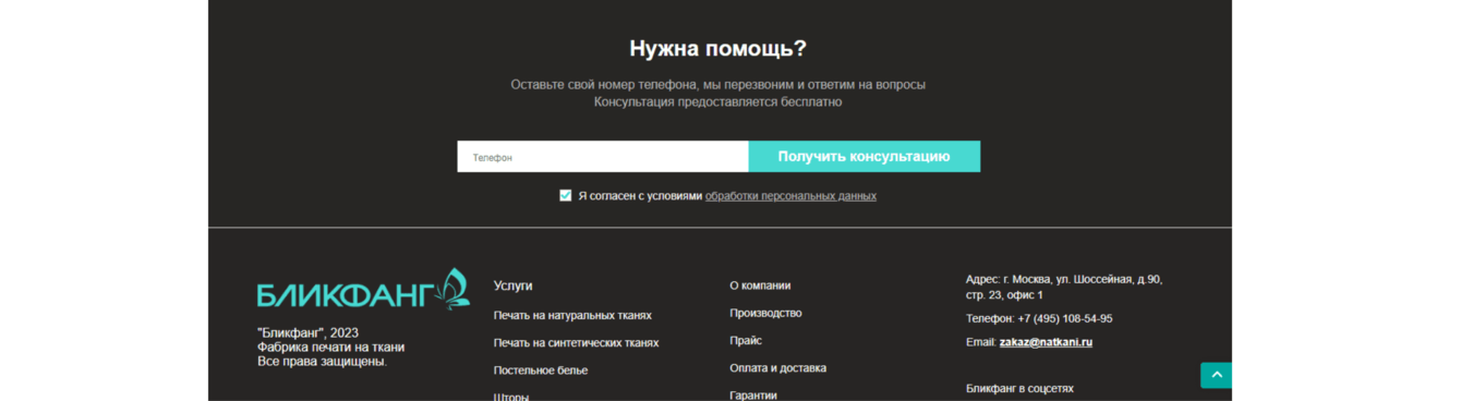 Клиент: «Бликфанг» — рекламно-производственное предприятие, которое занимается широкоформатной полноцветной печатью с 1999 г.