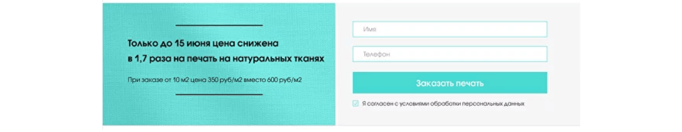 - В форме должен использоваться продающий призыв к действию, мотивация для пользователя (акция на услугу, ажиотаж на услугу, ограниченность во времени и т.д.).