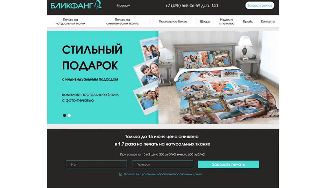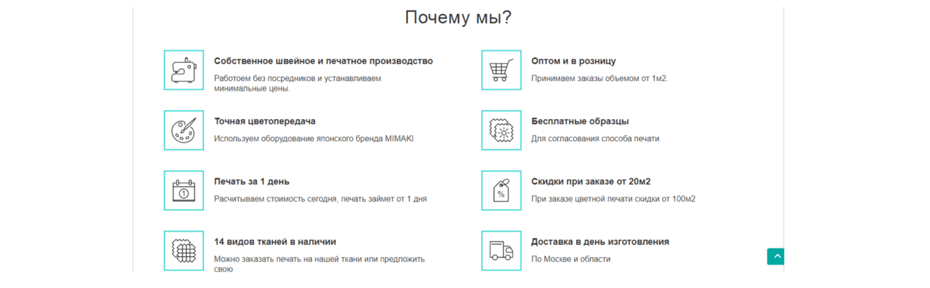 Мы провели глубинное интервью с представителем компании, который подробно рассказал о типах используемых тканей, особенностях печати, возражениях и вопросах потенциальных клиентов. Учитывая, что конкуренты делали на своих сайтах специальные предложения для пользователей, мы также разработали акции, которые использовали в новых формах заказа.