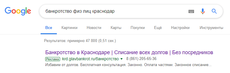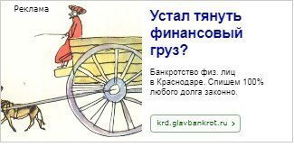 В медийной рекламе использовали баннер с оффером “Списание долгов со 100% гарантией”. Конверсия в заявку 0,5%, стоимость лида в 2,4 раза ниже, чем текстовые объявления на поиске.