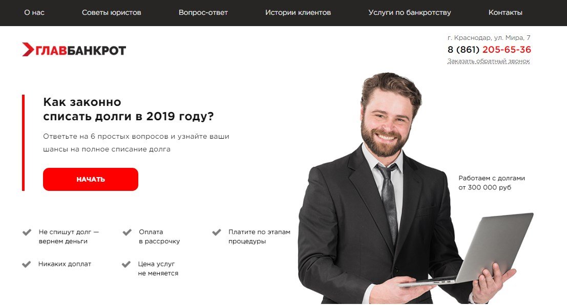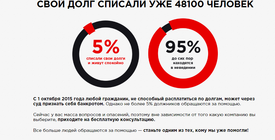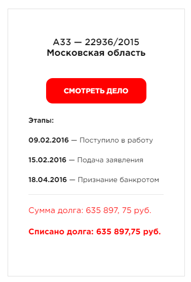 Добавили на сайт видео-отзывы клиентов, оффер о гарантией возврата денег в случае неполного списания долга, прайс-лист, скриншоты реальных определений об успешном завершении процедуры.