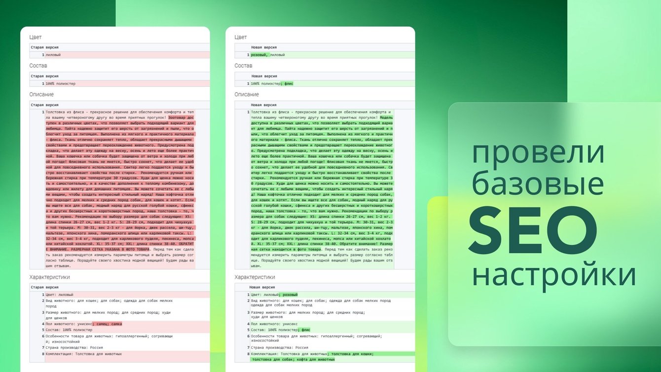Прежде чем запустить рекламу, мы проанализировали карточки на предмет seo-настроек и доработали: