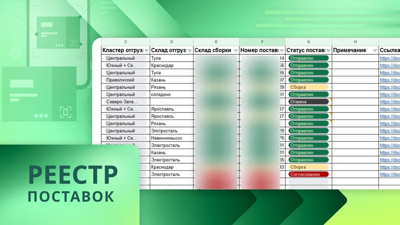Для удобства согласования с клиентом мы разработали Реестр поставок:
