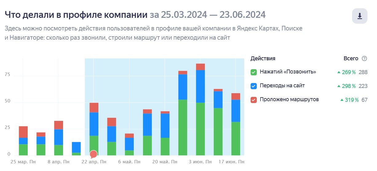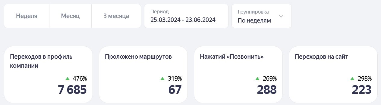 Также в карточке были негативные отзывы, которые были написаны ранее. Мы проработали ответы и стимулировали клиентов отправлять отзывы о полученной работе. Подняли рейтинг и повысили доверие потенциальных клиентов.