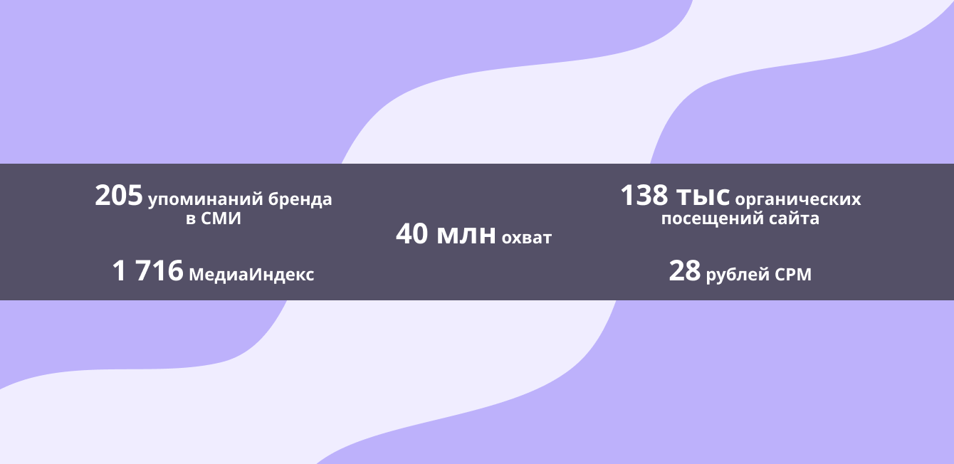 В результате была обеспечена стабильная положительная динамика упоминаний и МедиаИндекса, а также укреплён устойчивый экспертный образ бренда в федеральном информационном поле.