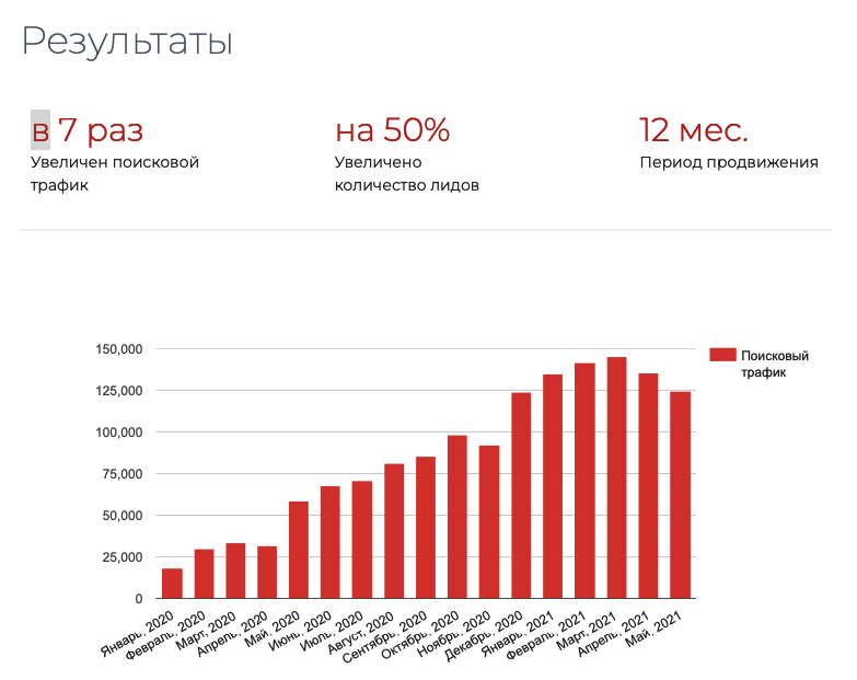 1. В 7 раз увеличили поисковой трафик с 20 000 до 148 000 переходов в месяц