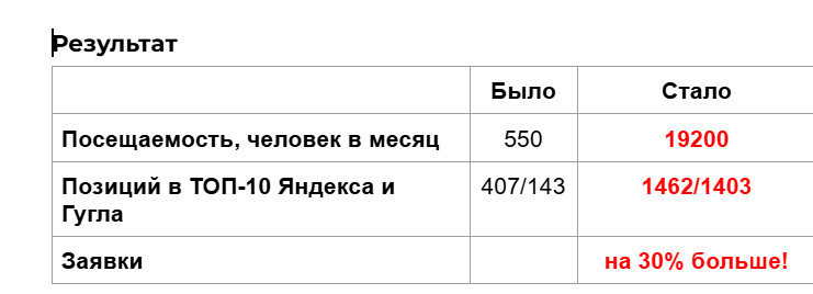 5. Для каждого из разделов сделали по 5-10 новых страниц. И для коммерческих страниц и для информационных. Только писали их не в блог, а прямо давали ссылки со страниц с услугами. И наоборот.