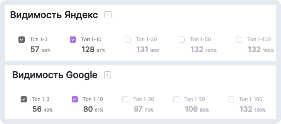 2. Увеличилась видимость сайта в поисковых системах по приоритетным ключевым запросам.