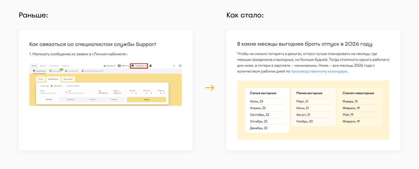 Как стало: статьи иллюстрируют таблицы, скриншоты, образцы документов и гифки.