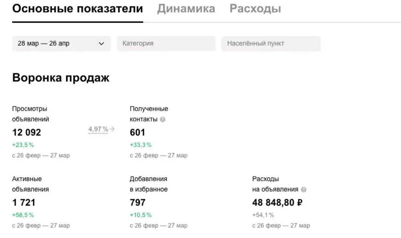 Результаты рекламной кампании на Авито в цифрах за 1 месяц: