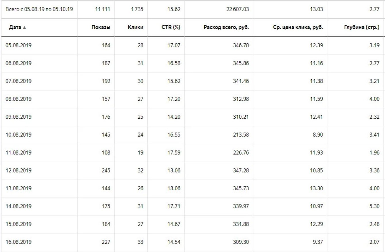 Результаты рекламной кампании в Яндекс.Директ за 1 месяц: