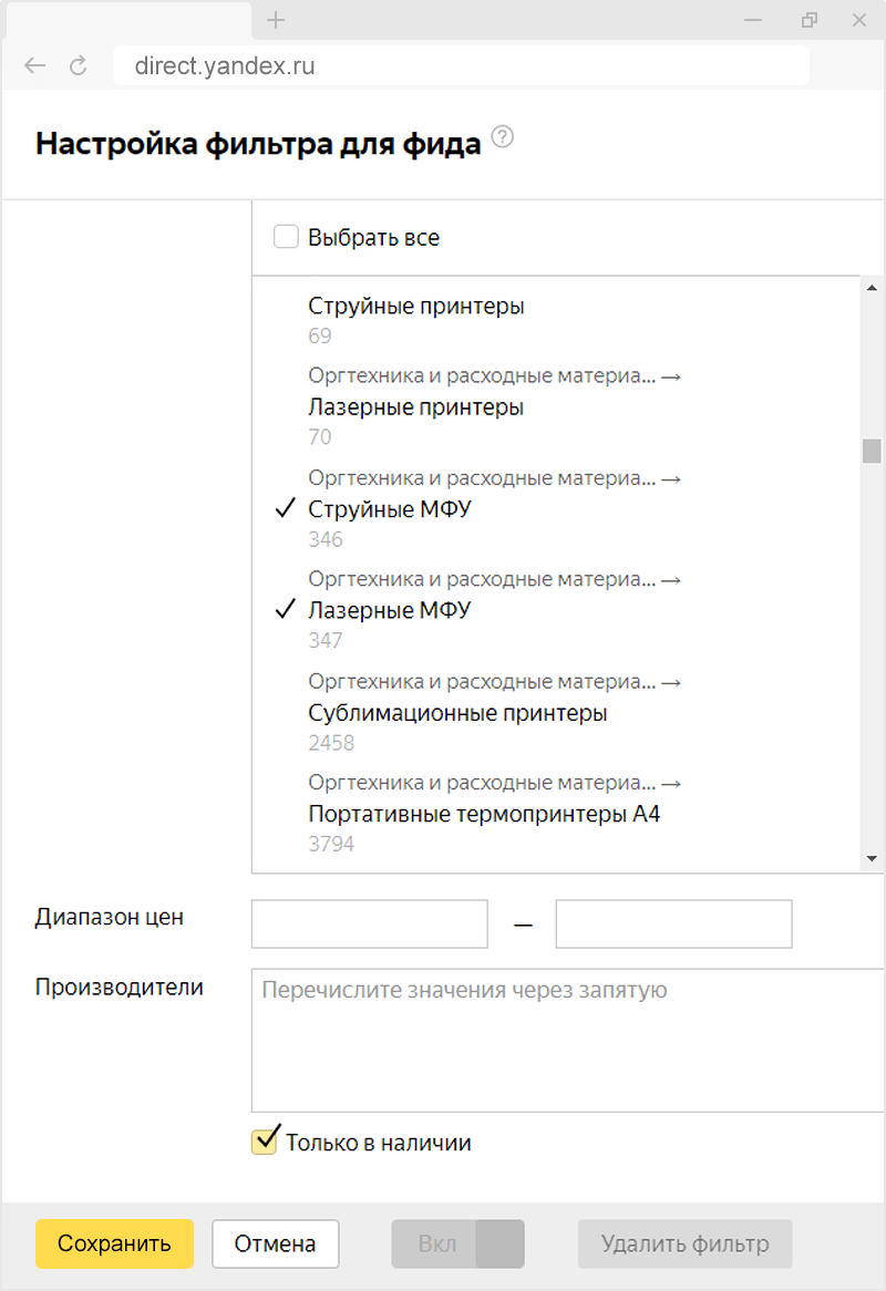 Применили дробные фильтры в выбранных городах. По многим городам работали достаточно широкие фильтры: все МФУ, все ноутбуки и так далее. Поэтому мы решили сузить фильтры и разбить их по линейкам и брендам. Впоследствии это позволило оценить эффективность каждого фильтра.