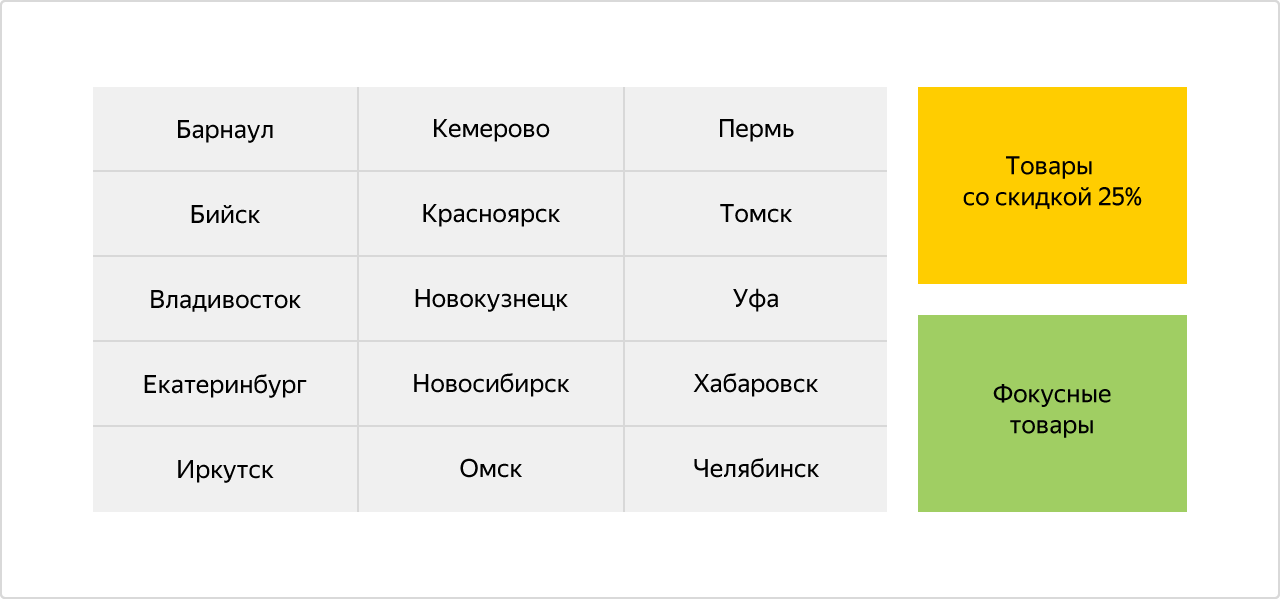 Запустили на Новосибирск тестовую кампанию с топ-товарами.