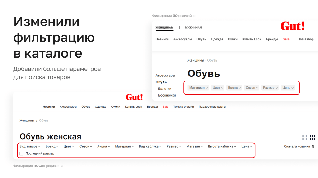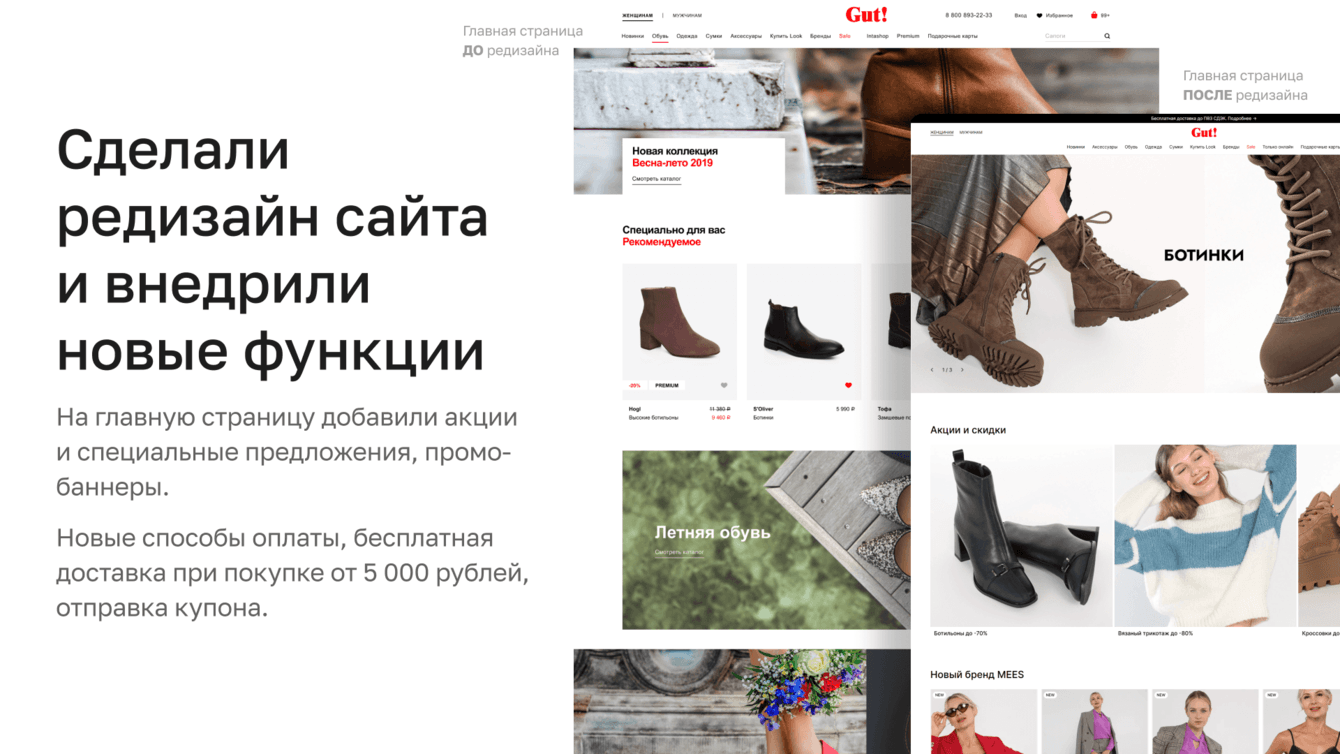Gut! — мультибрендовая сеть магазинов одежды и обуви из Перми с более чем 10-летней историей. Клиент обратился к нам с запросом ускорить работу сайта: страницы грузились медленно, и это напрямую влияло на продажи.