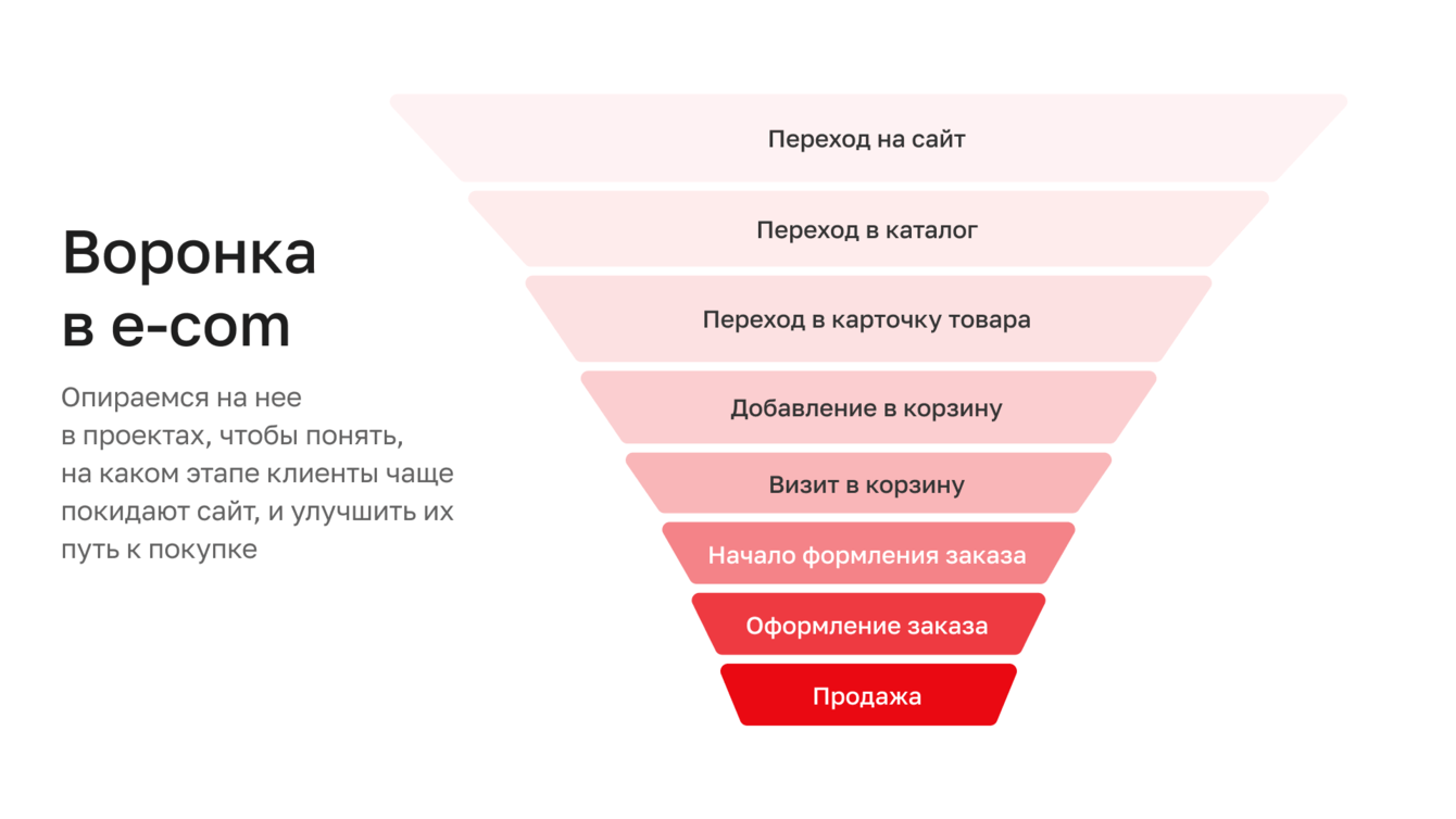 Почему важно оцифровать эти данные? Чтобы в будущем собирать детальную статистику и понимать на каком этапе пользователи чаще всего «отваливаются». Где их путь сбивается: при переходе из одного шага в другой или в процессе оформления заказа. Так мы будем лучше понимать, что нужно доработать на сайте, чтобы устранить разрывы и сделать путь клиента непрерывным.