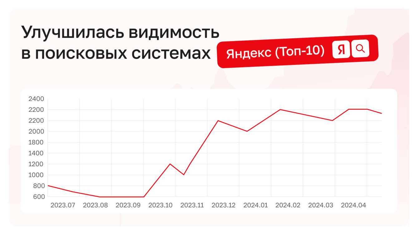Эти доработки стали основой для дальнейшего продвижения: устранили технические недочеты, завершили все, что не успели сделать на этапе техподдержки.