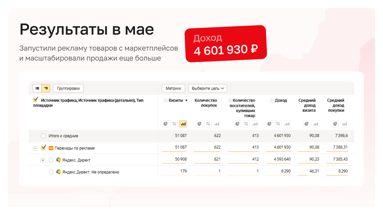 А в конце мая появилась возможность передавать покупки с Озона в рекламные кампании Яндекс Директа в качестве цели, чтобы еще больше улучшать показатели.