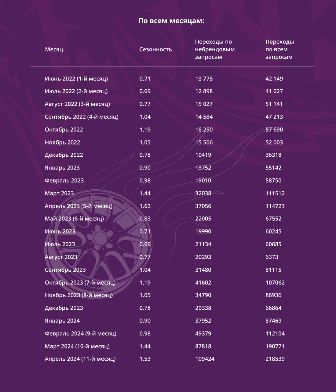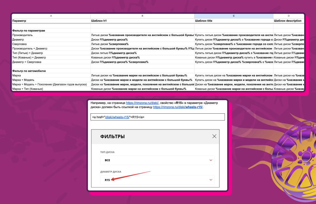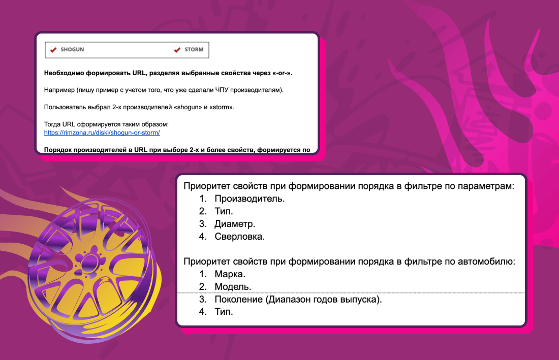 В тематике «Диски и шины» принято генерировать страницы на основе фильтров.