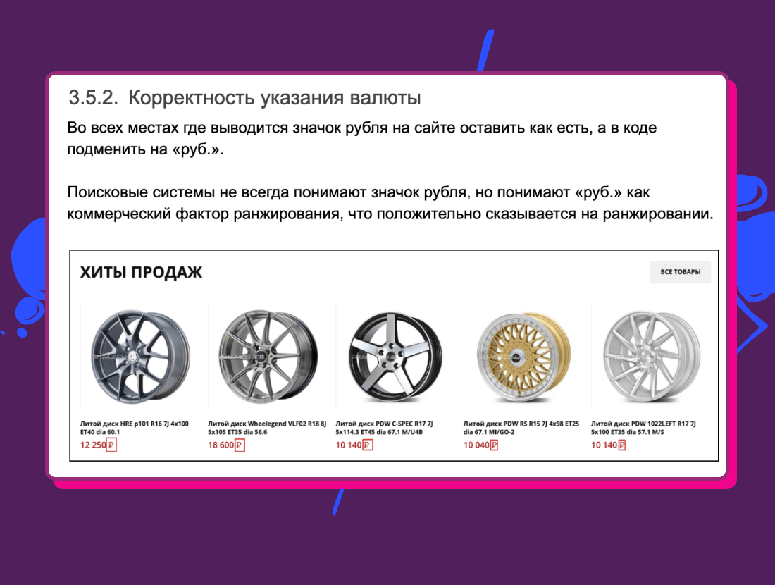 Подменили значок рубля на руб. в коде. Поисковые системы не всегда понимают значок рубля, а вот руб. воспринимают как коммерческий фактор. Это хорошо влияет на ранжирование.