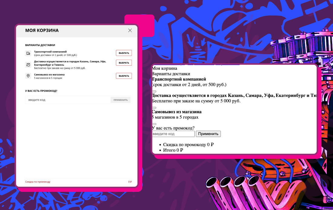 Для всех страниц товаров из кода убрали информацию, которая показывалась при нажатии на корзину. Там дублировалась информация по вариантам доставки, которая уже была на самой странице.