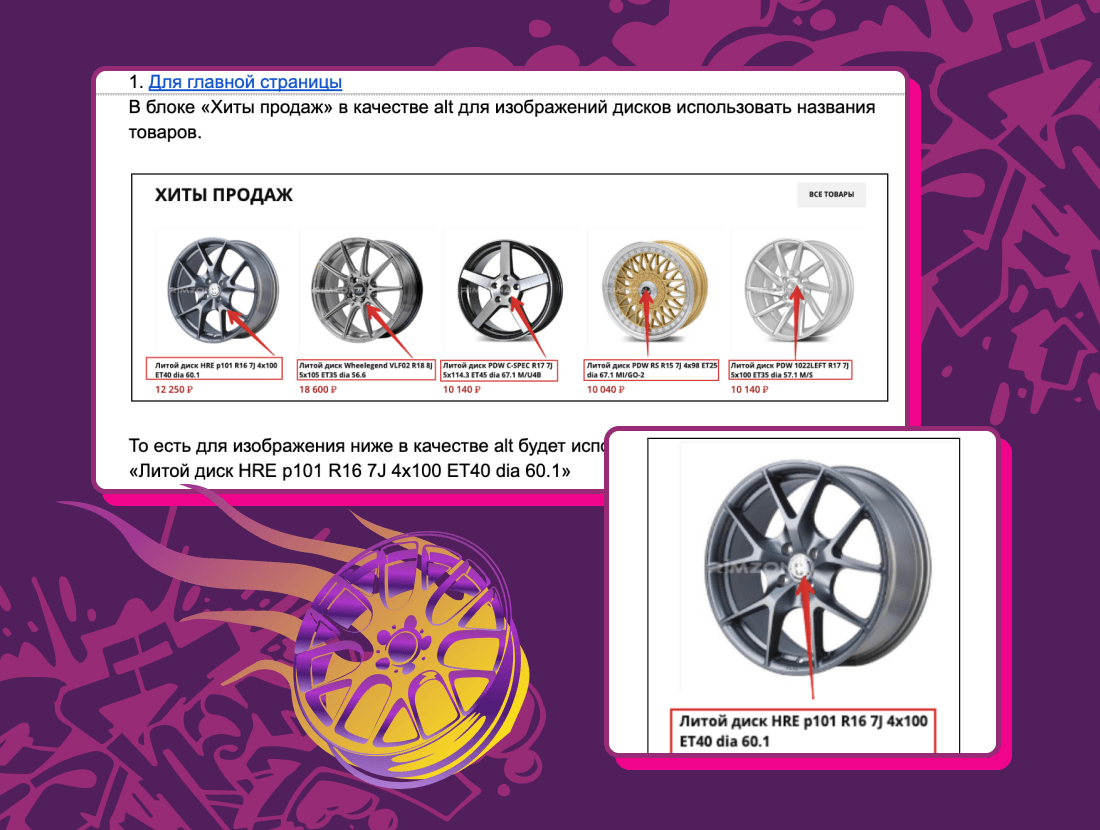 Сгенерировали alt у изображений по шаблону для разных типов страниц.