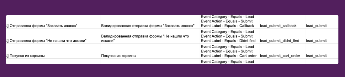 Провели базовую настройку аналитики и составили ТЗ. Настроили отслеживание целей, когда пользователь заказывает товары или передает свои данные для получения консультации.