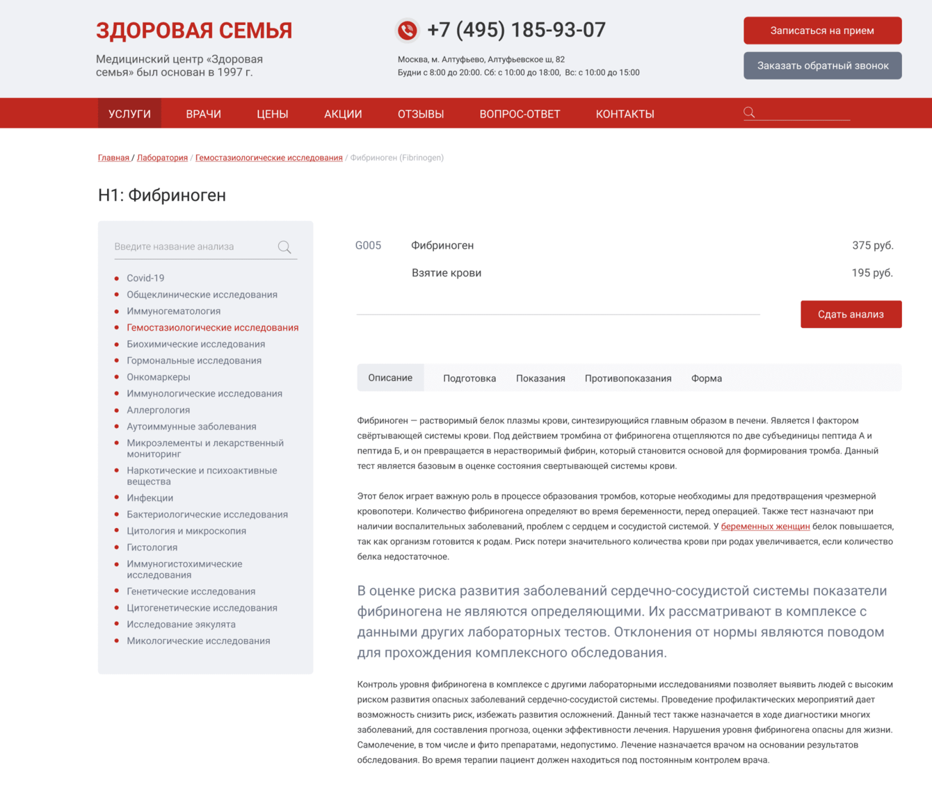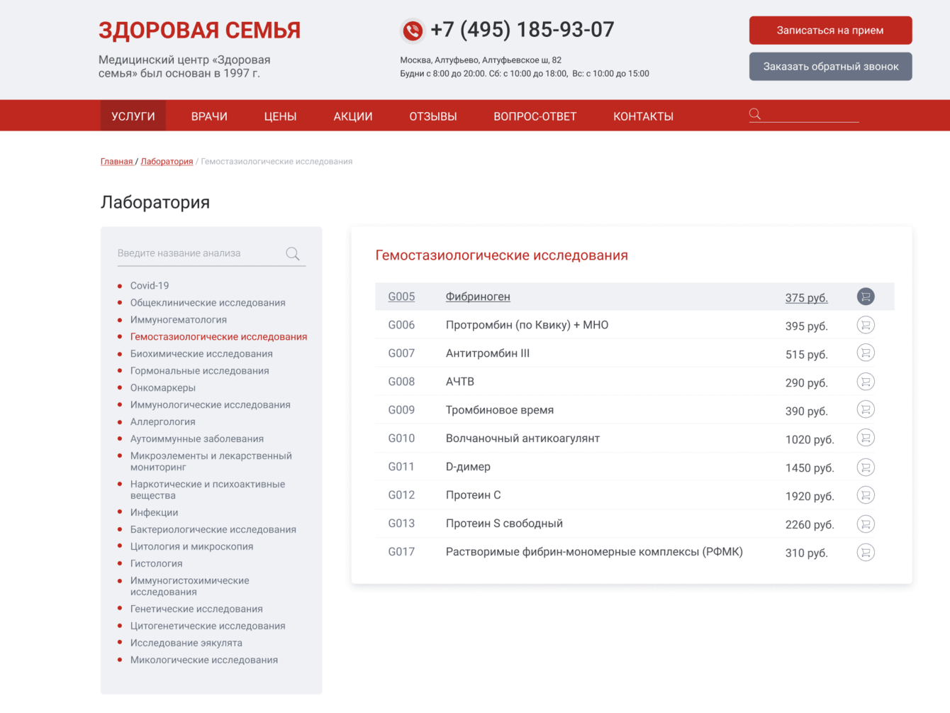 Сейчас наша команда разрабатывает дизайн, верстку и настраивает логику работы полноценной лаборатории с выбором анализов, возможностью положить и заказать анализ через корзину, возможность онлайн-оплаты, что особенно важно в эпоху ковида.