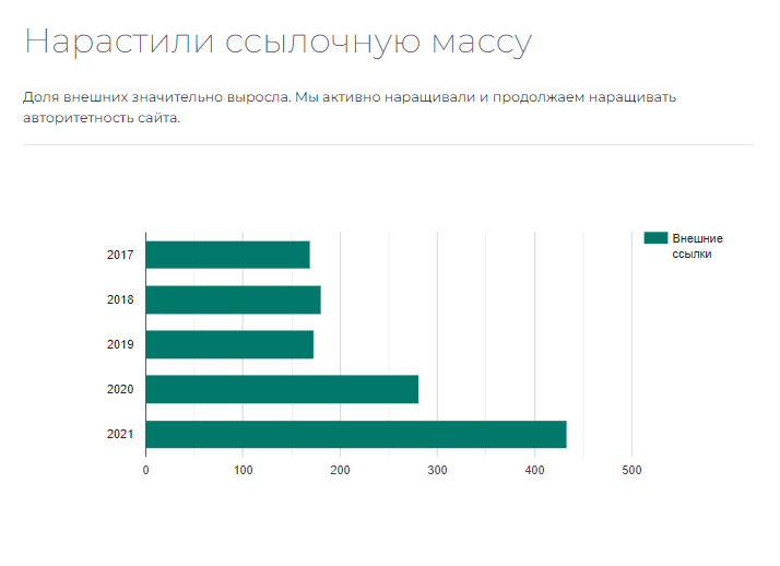 Проведен тщательный ссылочный аудит и выстроена политика наращивания ссылок