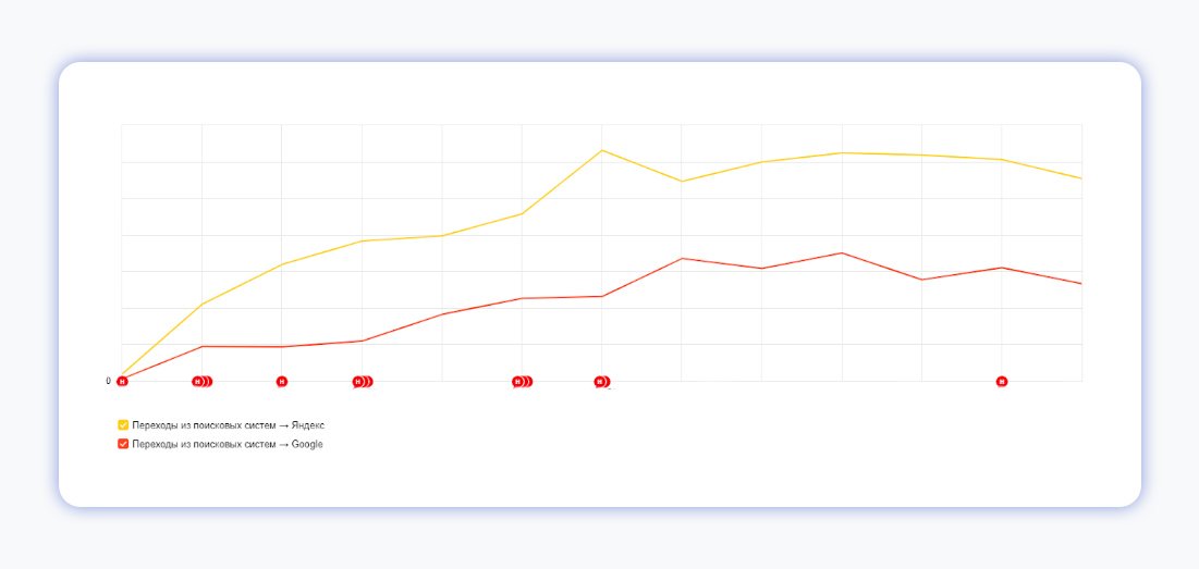 Привести больше трафика из поисковиков и вывести большинство запросов в топ-10 с помощью SEO. Отдельно клиент хотел улучшить видимость сайта в Google, так как после 24 февраля в этом поисковике стало невозможно запускать контекстную рекламу.