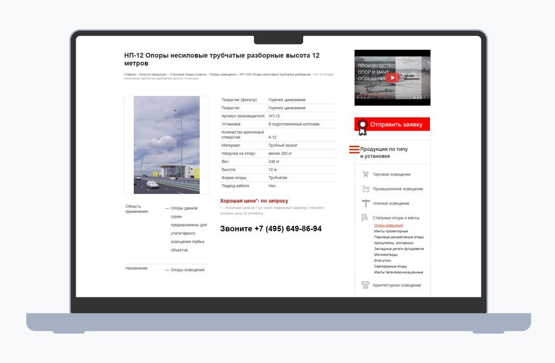 Почему так? Промышленная сфера — особая. Часто конкретная модель мачты уже указана в проекте дороги или стадиона. А сметчик только ищет мачту, чтобы заказать ее по выгодной цене. Именно сметчик обычно копирует артикул мачты из проекта и вставляет его в поисковую строку Google или «Яндекс». Поэтому трафик по артикулам в этой сфере достаточно большой.