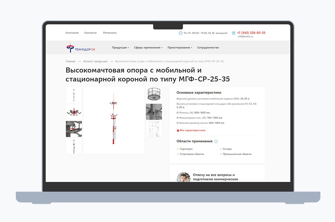 Например, «Технодор» находится в Екатеринбурге. Наше SEO помогло компании увеличить сбыт в других регионах России.
