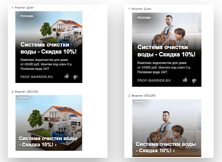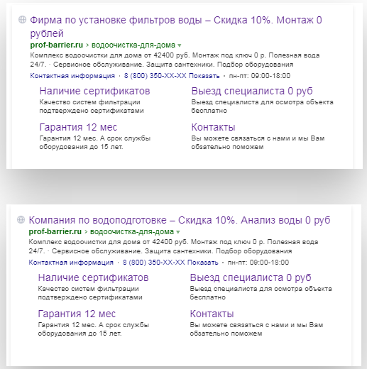 На а/б тест сделаны 2 вида заголовка 2 объявления.
