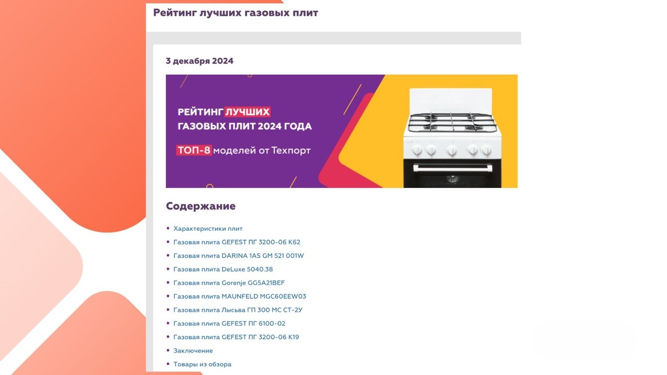 создание страниц рейтингов бытовой техники, т.к. нужно было акцентировать внимание аудитории на этой категории.