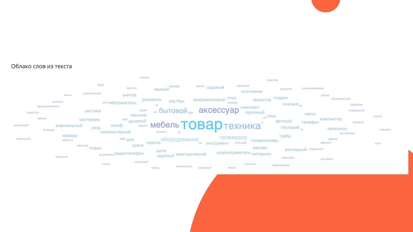 Из-за обширного меню в текст каждой страницы попадали лишние слова. Например, облако слов для листинга «микроволновые печи» сдвинуто далеко от целевого запроса: