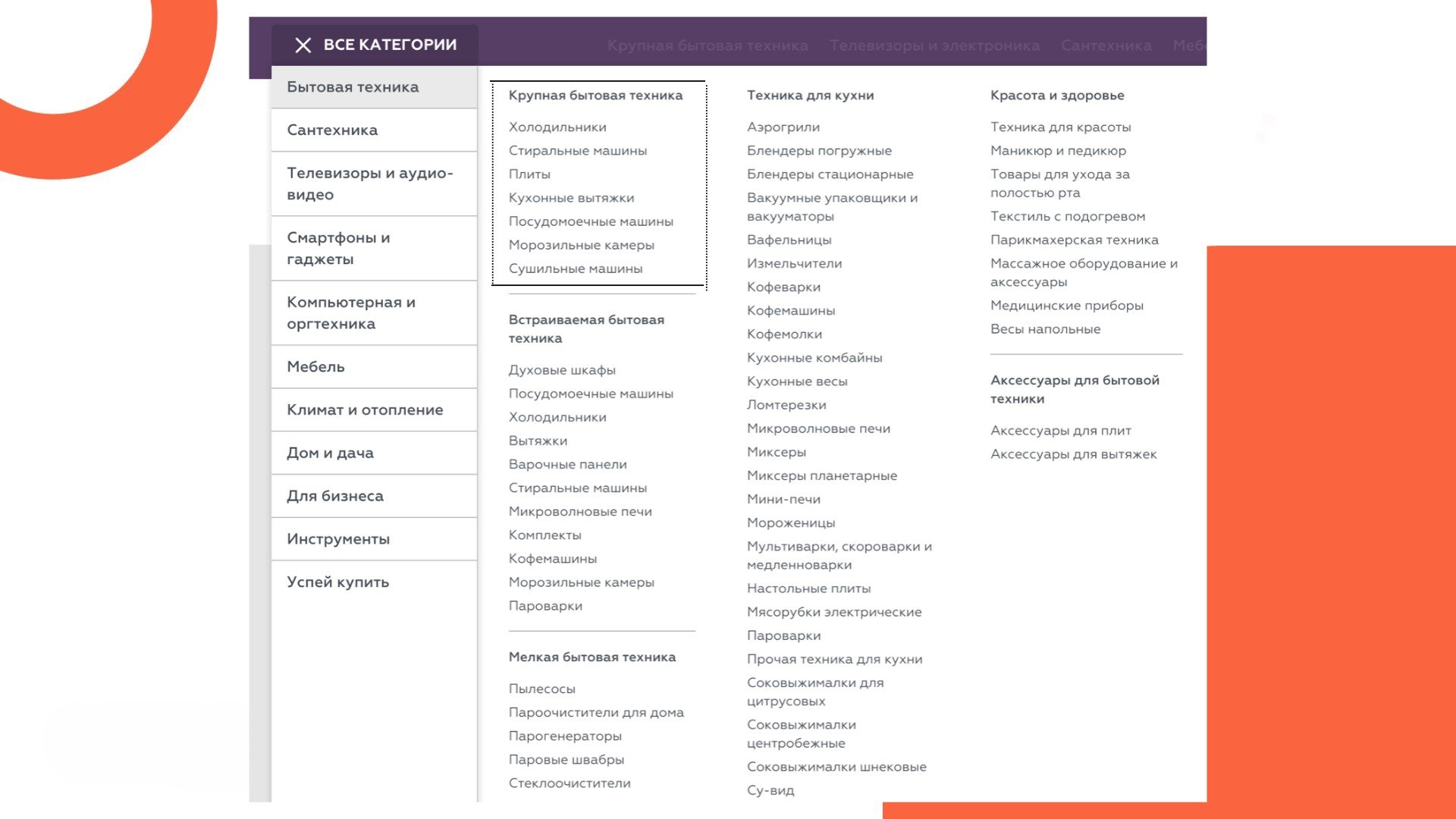 создание страниц рейтингов бытовой техники, т.к. нужно было акцентировать внимание аудитории на этой категории.