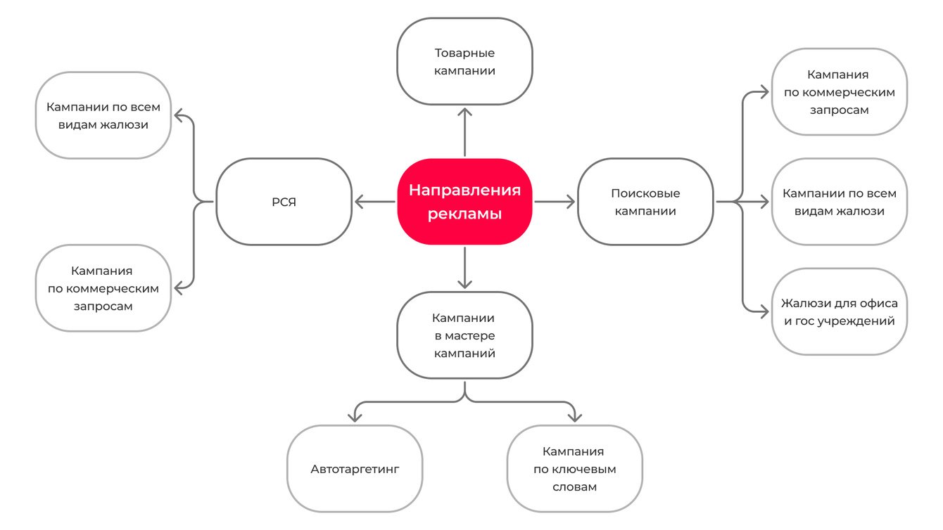Дополнительно, помимо кампаний по типам жалюзи и коммерческим запросам, настроена отдельная кампания на решения для офисов и госучреждений. Лиды там заметно дороже, но средний чек по таким заказам существенно выше.
