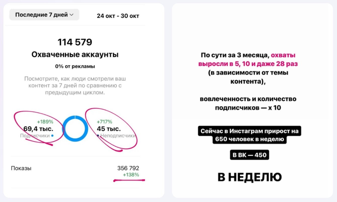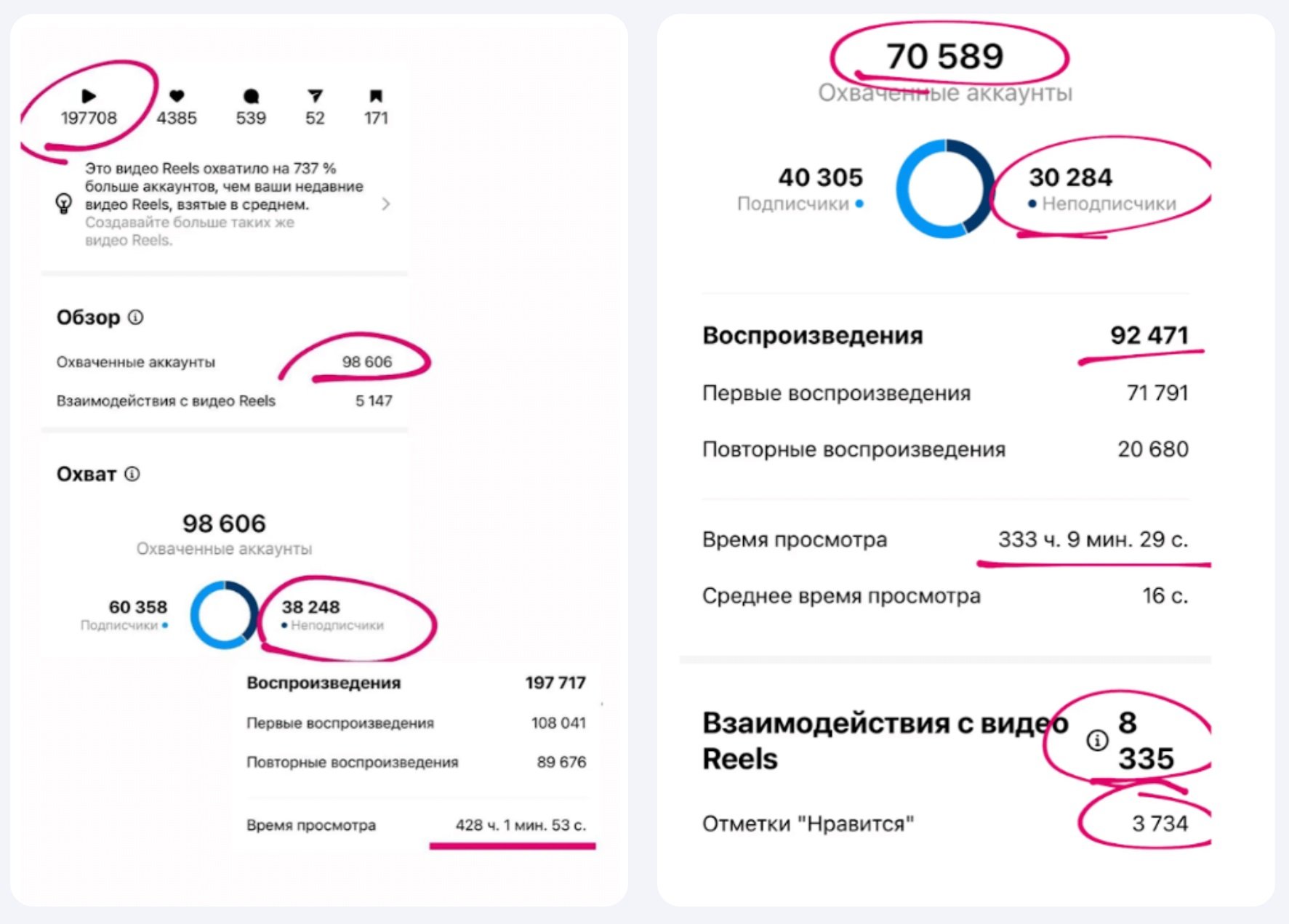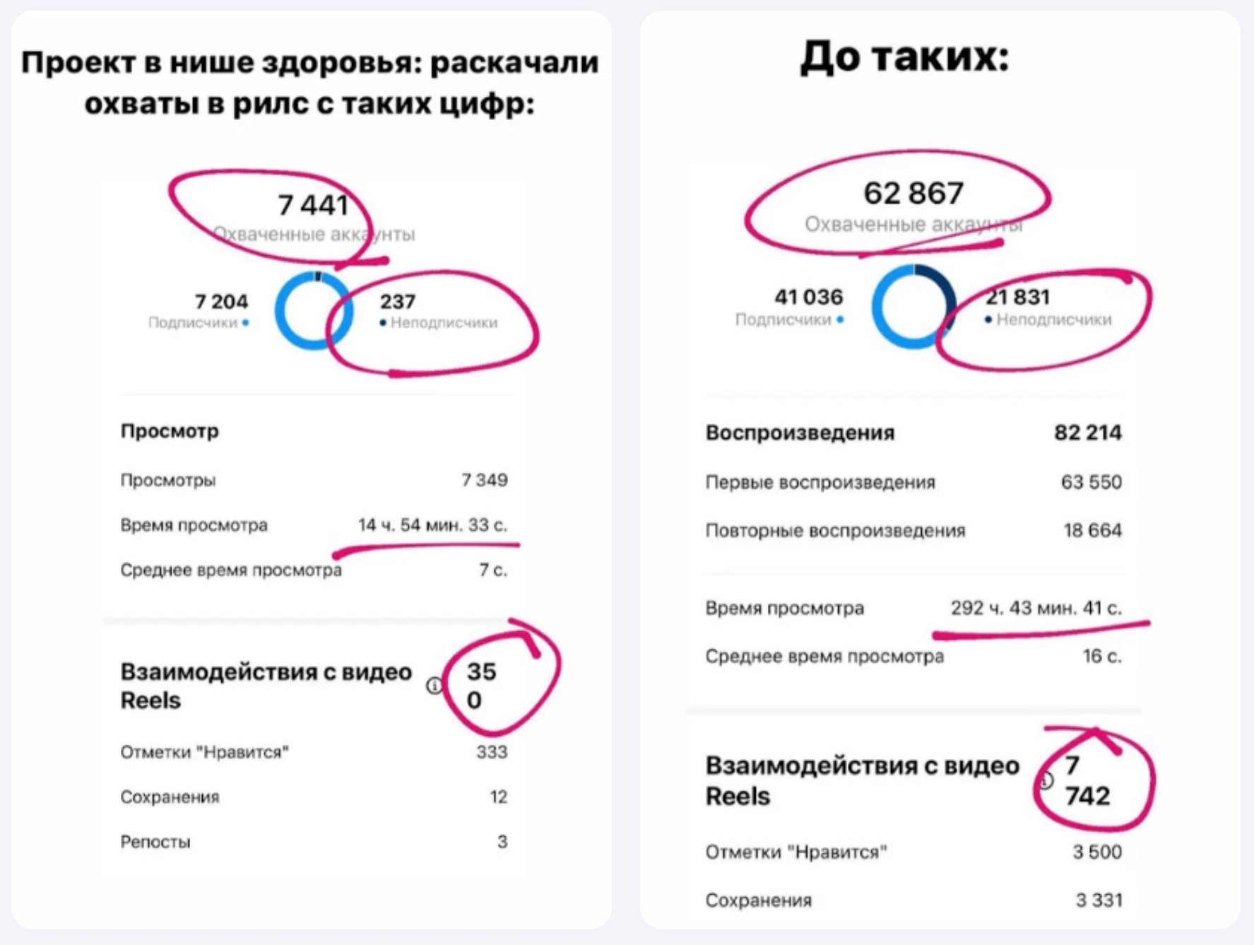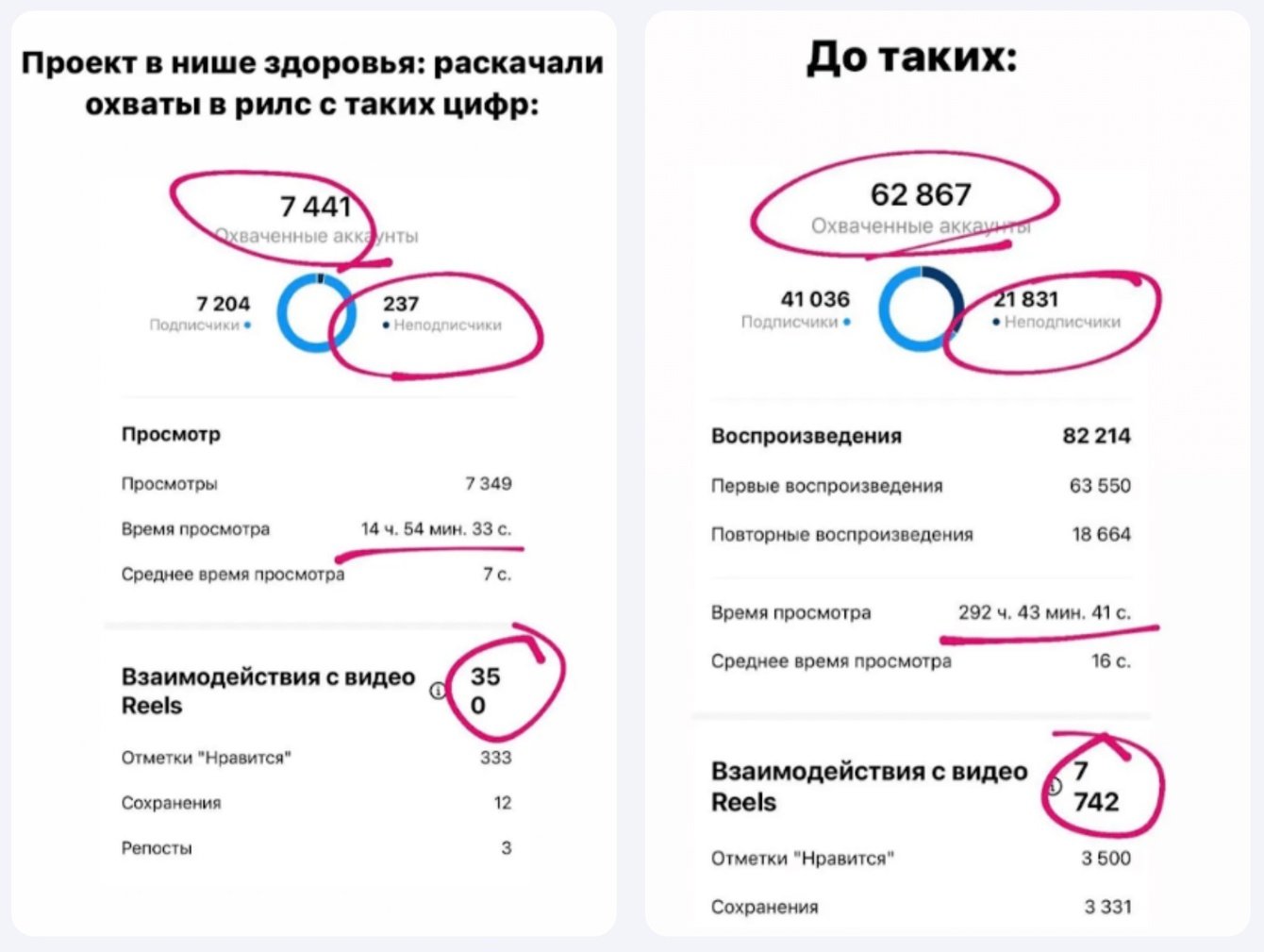 - с 25 000 до 200 000 просмотров выросли охваты рилс.