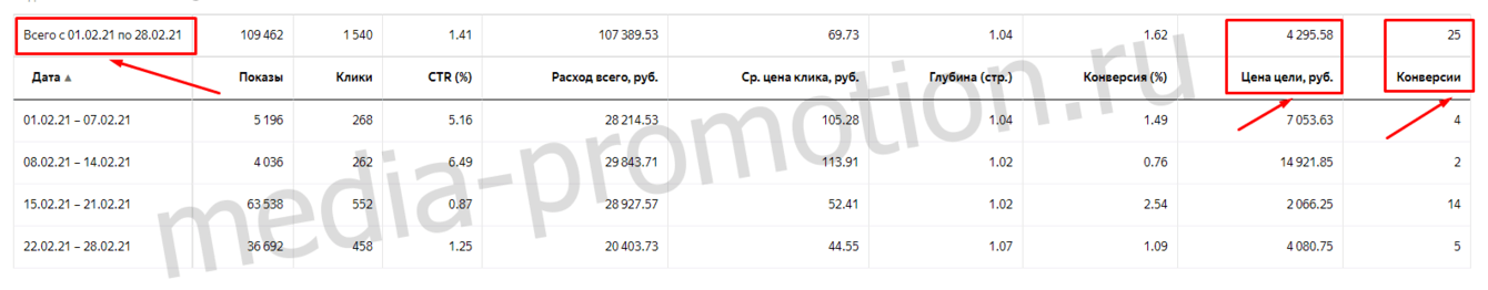 В период с 1 по 28 февраля было - 25 заявок по 4300 рублей, что было достаточно дорого. Поэтому было принято решение проверить эффективность всей комплексной работы маркетинга, а именно работу и адаптивность сайта, а потом уже настраивать на него рекламу в Яндексе.