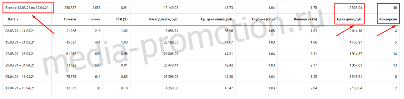 Была настроена реклама в Яндекс Поиск + Рся, которая показала с 12 марта по 12 апреля пришло 46 заявок по 2500 рублей.
