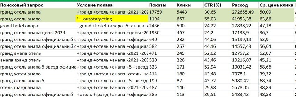 «Гранд Отель Анапа» 5* — пятизвездочный курортный комплекс на побережье Черного моря в Анапе. Бюджет клиента варьируется в зависимости от месяца или сезонности и составляет от 235 тыс до 800 тыс руб. в месяц. Цена заявки — от 3200 до 7000 рублей. Основная цель — обеспечить отель бронированиями на сезон.