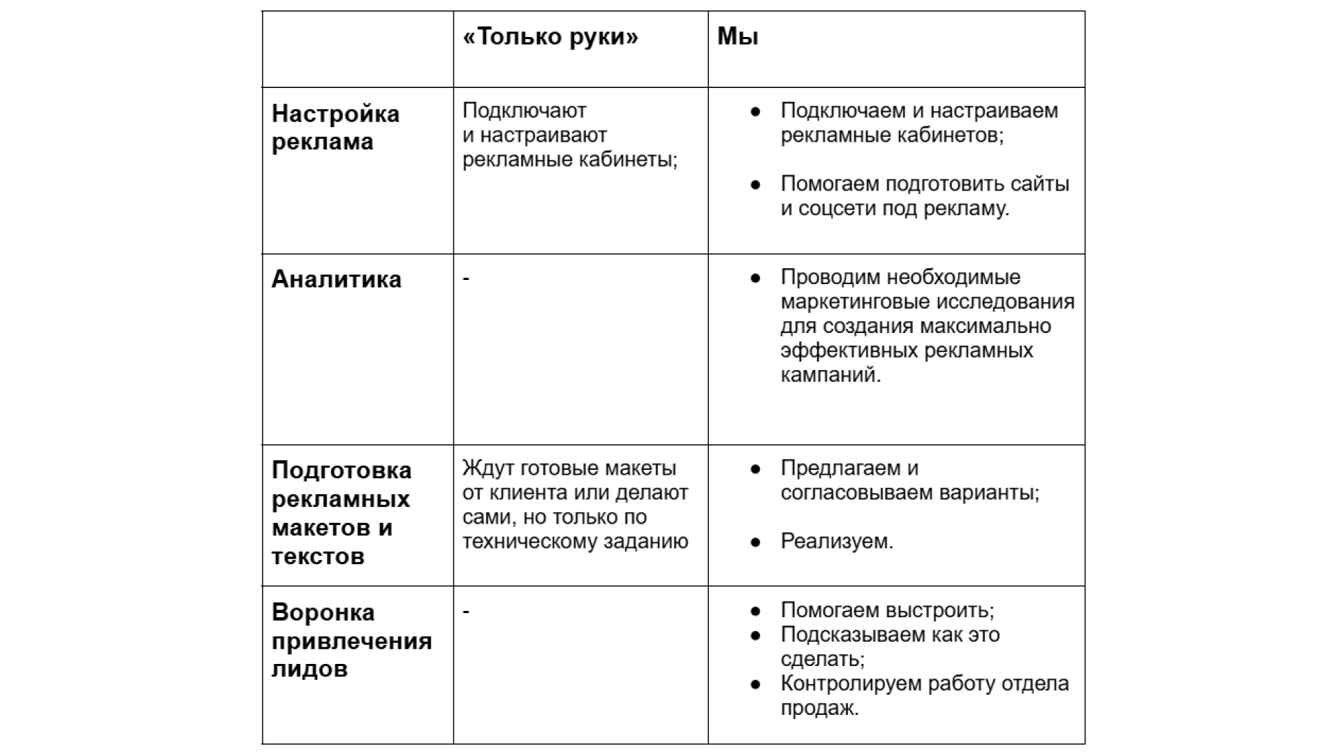 Ни аналитики тебе, ни производства рекламных текстов и макетов, никакой настройки и продумывания воронки продаж. С них только настройка кампаний и все. Что в условиях текущего рынка — ну просто кощунство!