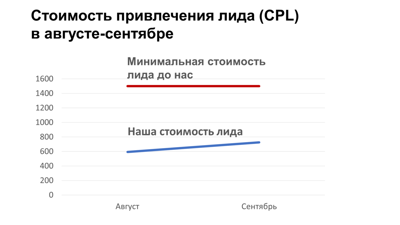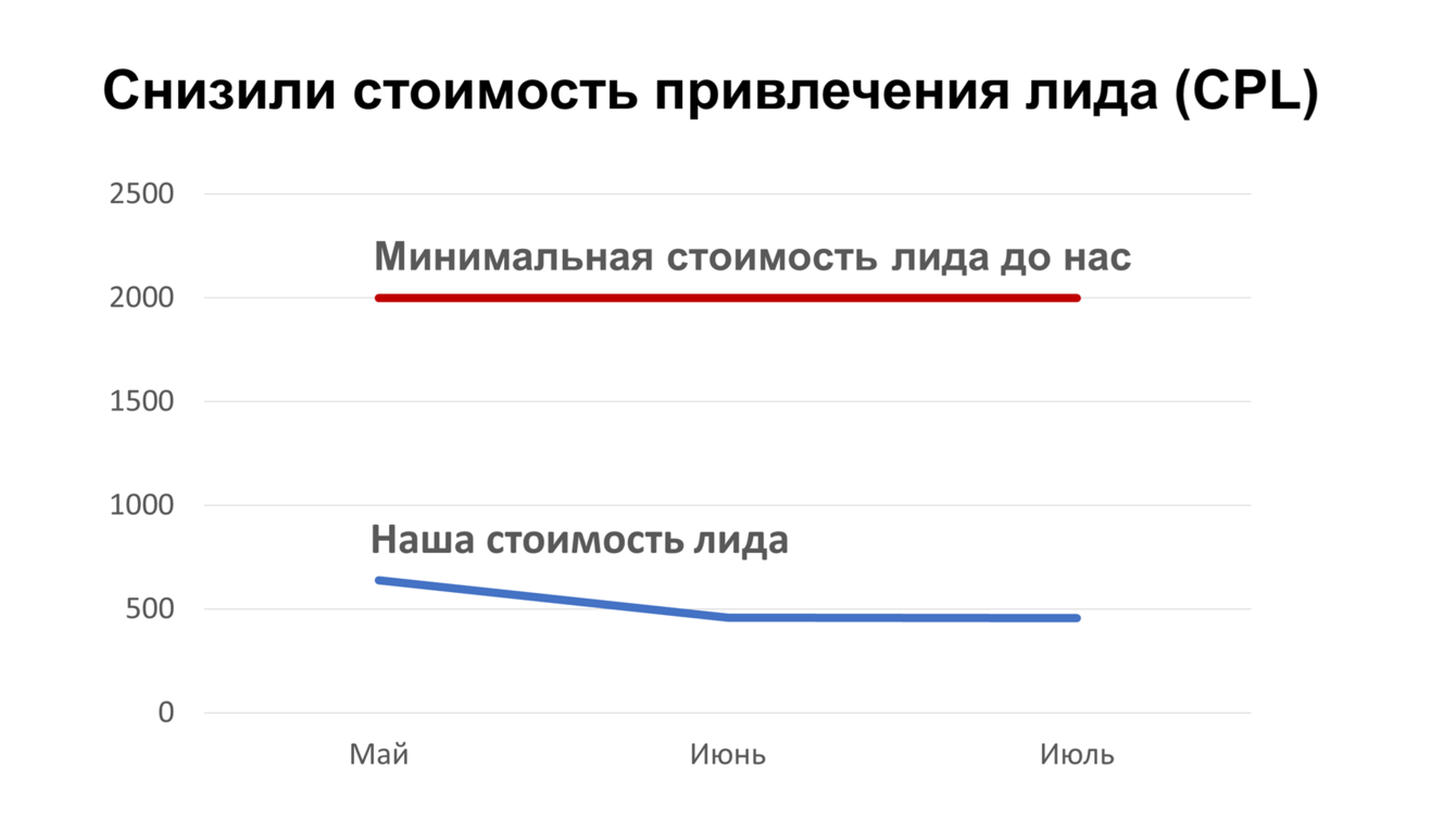 3. Снизили стоимость привлечения лида на 66,3% по сравнению с предыдущими подрядчиками.