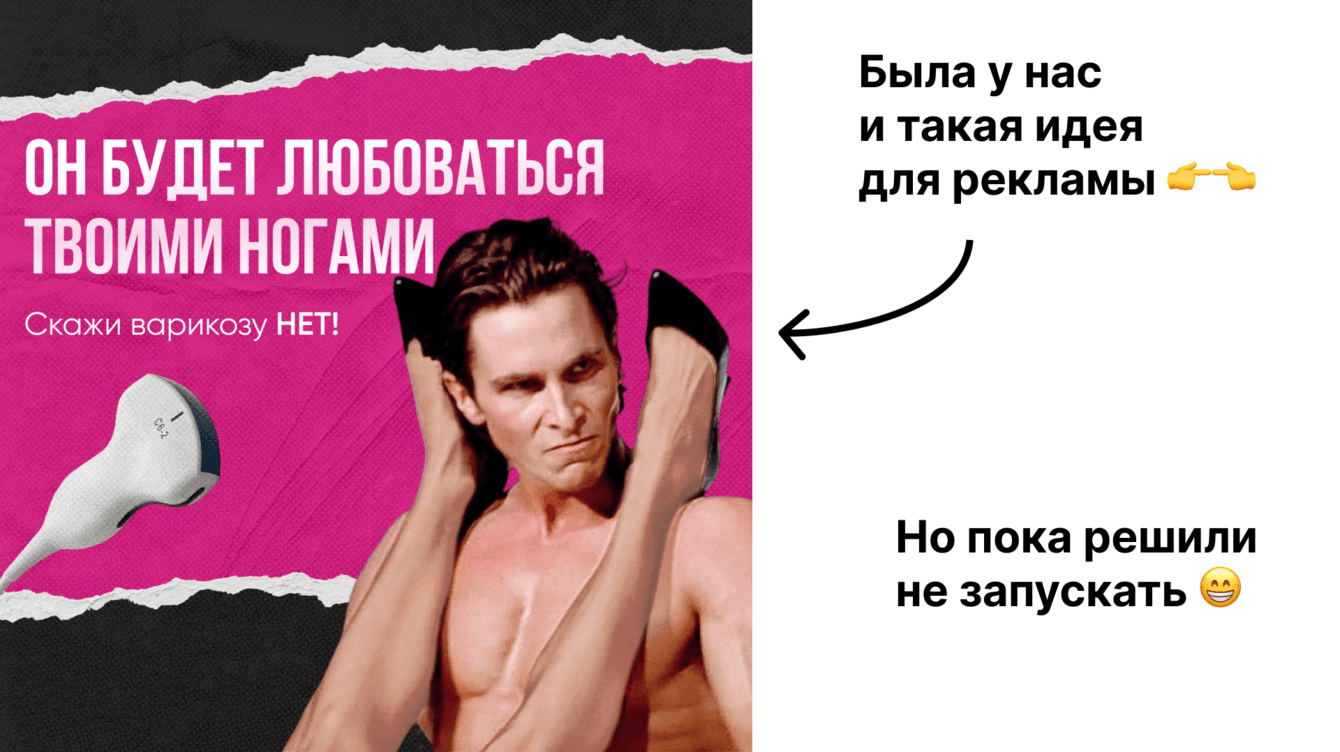 Для привлечения новой аудитории мы решили сделать акцент уже на симптомах варикоза. Чтобы привлечь тех, кто ищет не врача, а способ лечения. Флеболога в рекламе назвали «врачом по венам», чтобы выйти на тех, кто незнаком с этим термином.