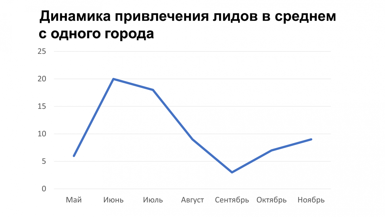 — В 14 городах — 137 лидов по 594 р. за лид.