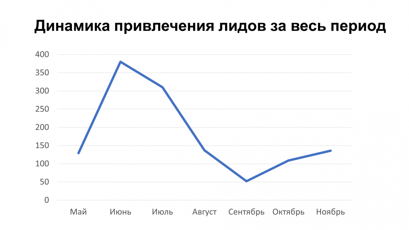 1. За 6,5 месяцев работы мы привлекли 1253 лида.
