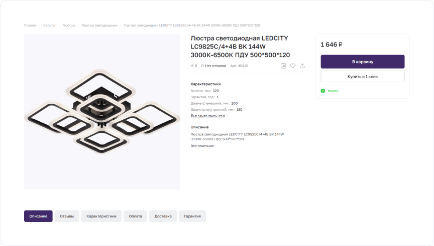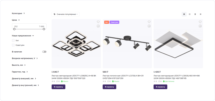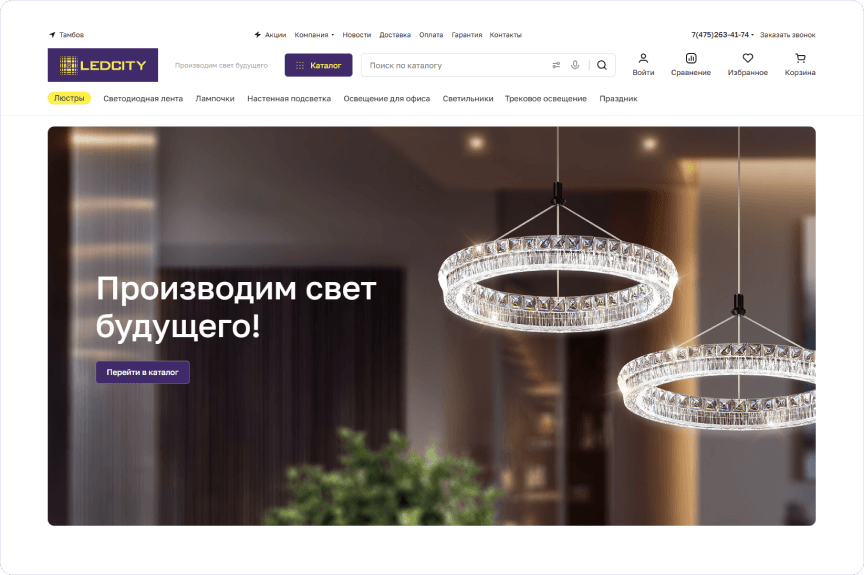 Запустить интернет-магазин светодиодного освещения «с нуля», который сразу готов к работе — не набор отдельных функций, а полноценная система продаж. Компания LEDCITY работает в сегменте светодиодного освещения: люстры, светильники, трековые системы, ленты и лампы для дома, офиса и коммерческих пространств. При этом компания развивает собственные решения и не зависит от типовых поставщиков.