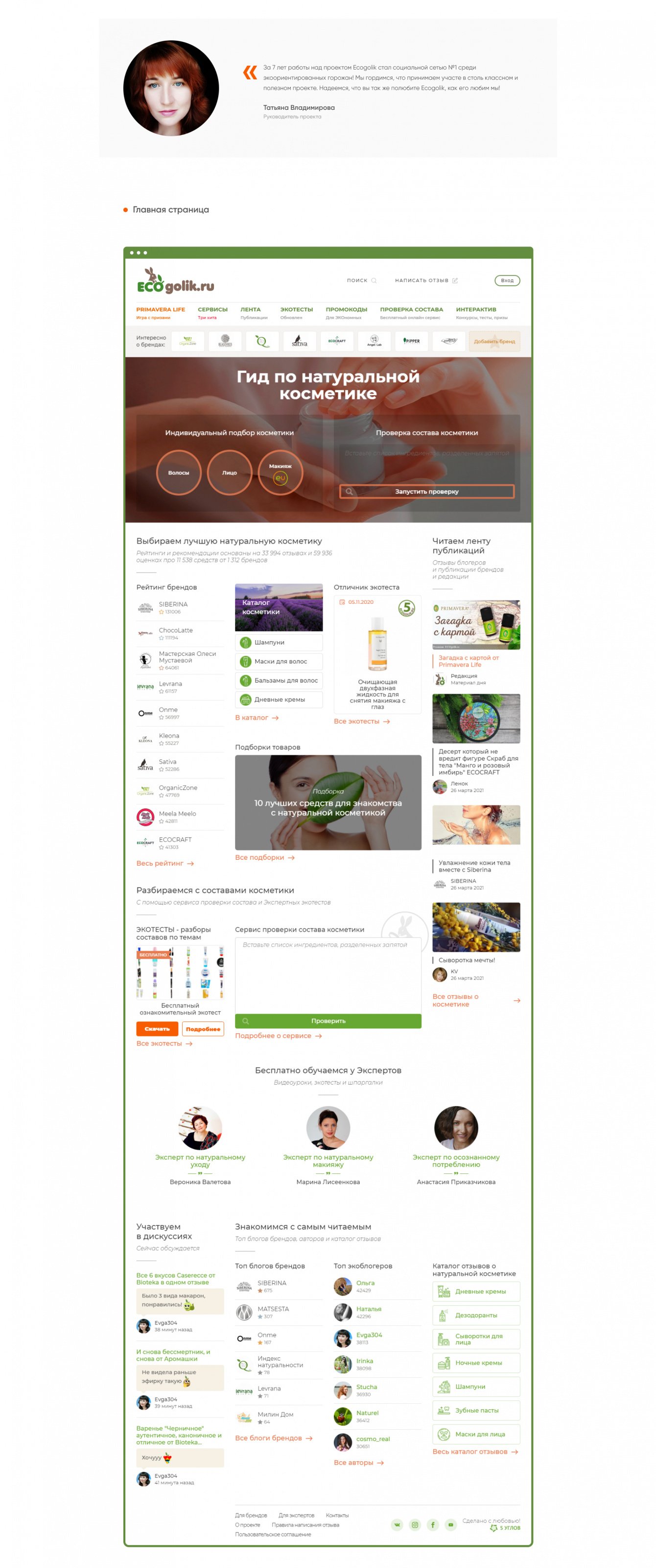 Реализована возможность продавать информационные товары (эко-тесты) с разбором состава от ведущих экспертов и приглашенных звезд.